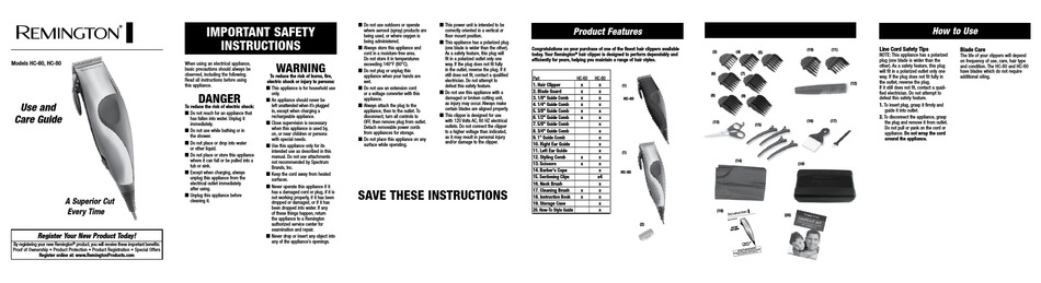 | Product: Remington Hc 60 Use And Care Manual Pdf Download Manualslib |